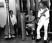 Foto: Live-Konzert 2001 Vernissage im Rathaus Hechingen Petra Kruse (Harfe), Eric Kleinmann (Klangbaum), Teflon Fonfara (Electric Sitar)